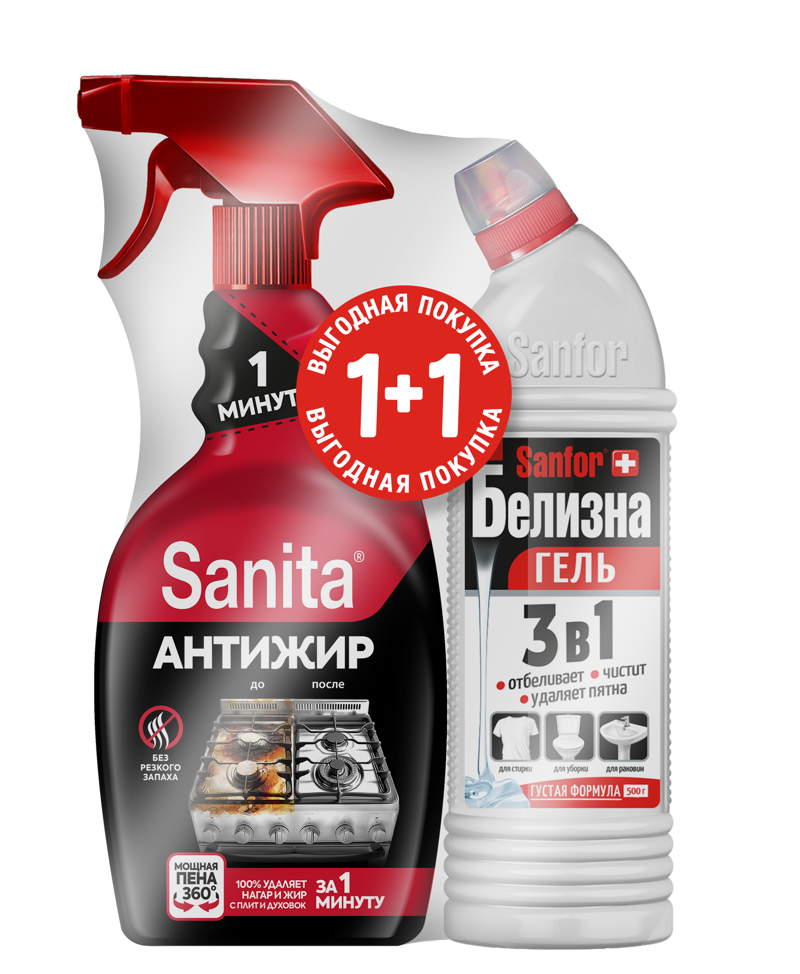 Sanita Спрей 1 Минута Чистящее средство для кухни 500 мл +Sanfor БЕЛИЗНА ГЕЛЬ 450мл ПРОМО 29874 Быт. химия Ступино