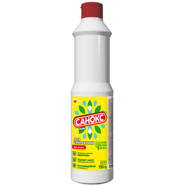 Гель САНОКС чистящий, 750мл удалит даже самые стойкие загрязнения. Средство прекрасно справится со следами мыльных разводов на кафеле, ржавчиной на сантехнике и с известковым налетом.