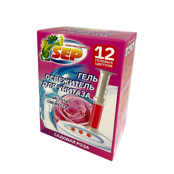 SEP Гель-шприц освежитель для унитаза предназначен для очищения и ароматизации унитаза. При каждом смывании гель постепенно растворяется, оставляя унитаз чистым и свежим. Рекомендуется устанавливать «гелевые цветочки» в местах наиболее интенсивного прохождения воды.