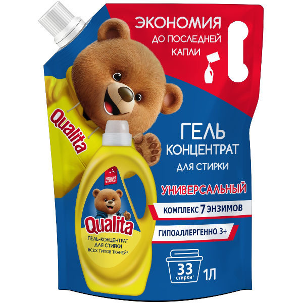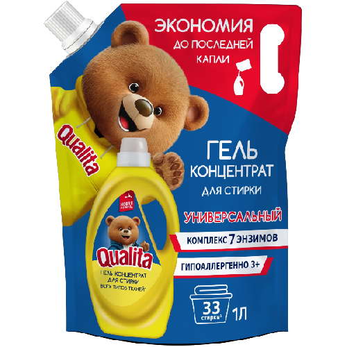 QUALITA Гель для стирки концентрат УНИВЕРСАЛЬНЫЙ new дой-пак 1000мл 71767 КОТТОН КЛАБ