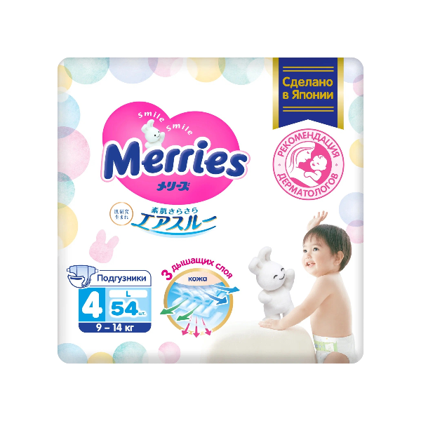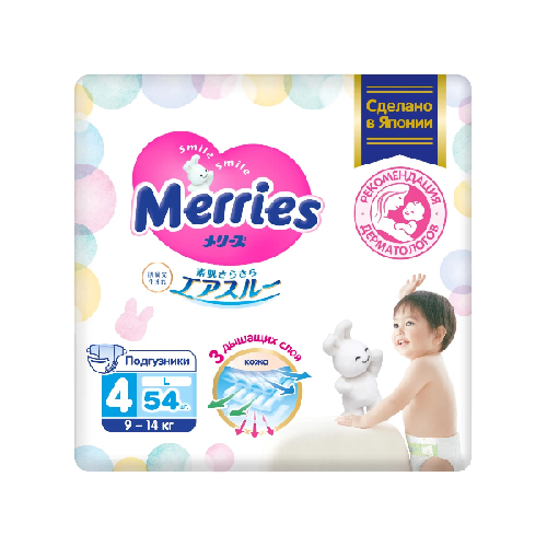 MERRIES Трусики-подгузники для детей L 54 шт п/п (9-14 кг) MERRIES