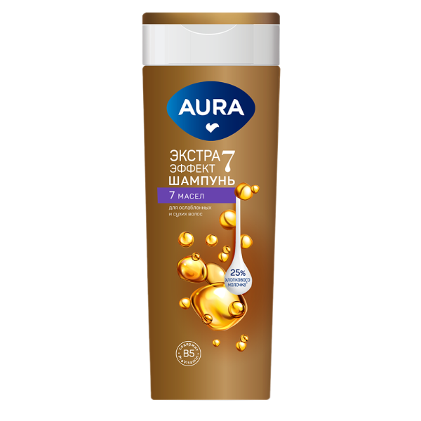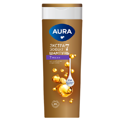 Шампунь Aura 7 масел предназначен для ослабленных и сухих волос, нуждающихся в интенсивном уходе. Бережно очищает кожу головы, питает и восстанавливает волосы по всей длине. Комплекс 7 масел питает и смягчает пряди, придавая им блеск, защищает от сухости, улучшает их качество. Провитамин В5 восстанавливает поврежденную структуру волос, глубоко питает и разглаживает их. Хлопковое молочко легко проникает в структуру волос, нежно ухаживает за ними и придает особую мягкость и блеск. Благодаря активной формуле тройного ухода волосы восстанавливаются и приобретают здоровый внешний вид при его регулярном использовании. Для наилучшего эффекта рекомендуем использовать вместе с бальзамом Aura 7 масел.