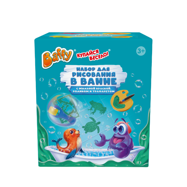 Набор для рисования в ванной с мыльной краской, роликом и трафаретом Baffy