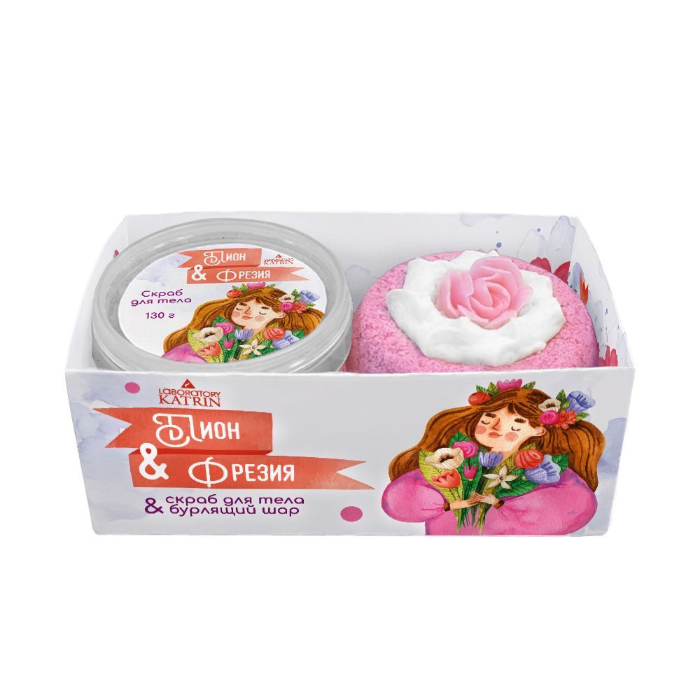 Соль для ванн НАБОР шипучая соль и скраб Пион & Фрезия кар/п (300г) Лаборатория КАТРИН