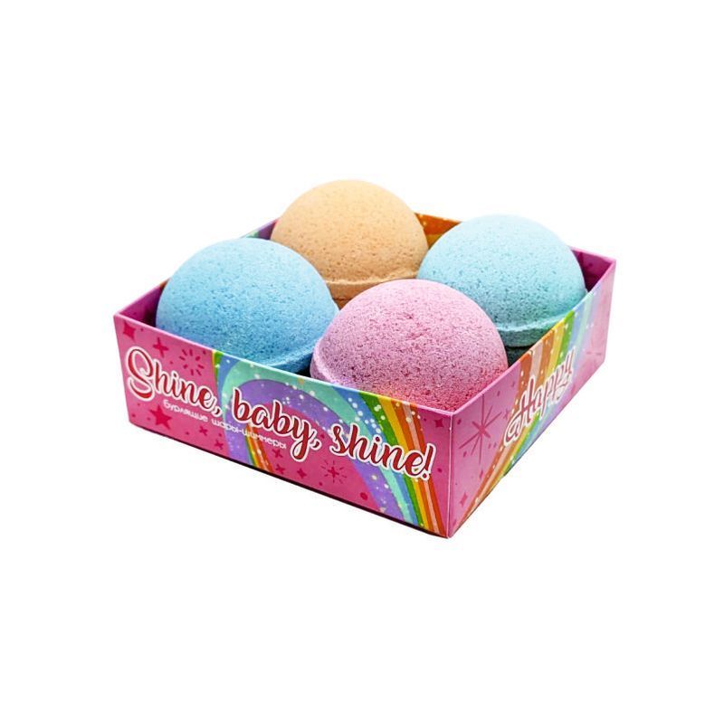 Shine, baby, shine врывается в твою жизнь! Новый набор с бурлящими шарами с шиммерными частичками создан специально для твоих мерцающих фантазий! Прими ванну и ощути на себе благородное мерцание и притягательные ароматы.