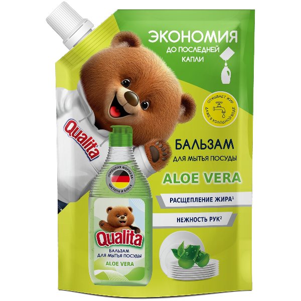 QUALITA Средство для мытья посуды GREEN TEA&ALOE дой-пак 500мл 43448 КОТТОН КЛАБ