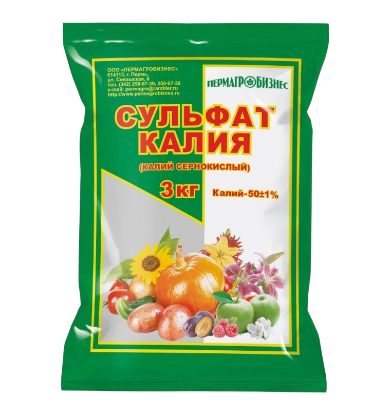 Калий сернокислый (сульфат калия) - бесхлорное калийное удобрение с содержанием калия 50%, хорошо растворимое в воде.